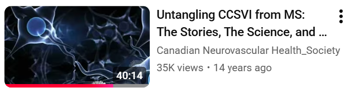 2. CCSVI (Chronic Cerebral Spinal Venous Insufficiency) is a vascular condition and I believe left untouched it leads to Multiple Sclerosis